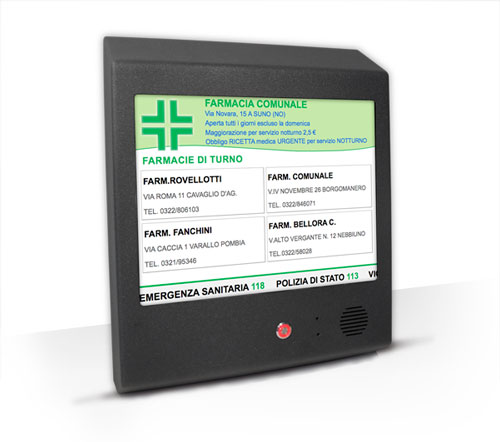 Bacheca Elettronica Gestione dei turni in autonomia o centralizzato per la visualizzazione delle Farmacie Aperte Bacheca Turni LCD Per la visualizzazione delle farmacie di turno su display LCD e la possibilità di inserire messaggi pubblicitari personalizzabili con foto e video. Bacheca Turni LED Per la visualizzazione delle farmacie di turno su display LED multicolor e la possibilità di inserire messaggi pubblicitari personalizzabili. Condividi: Fai clic per condividere su X (Si apre in una nuova finestra) X Fai clic per condividere su Facebook (Si apre in una nuova finestra) Facebook Mi piace Caricamento...